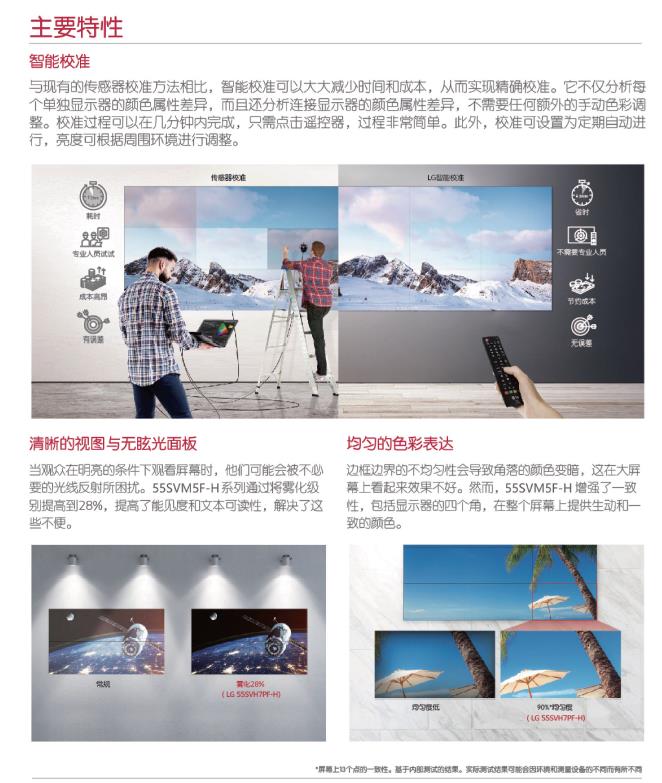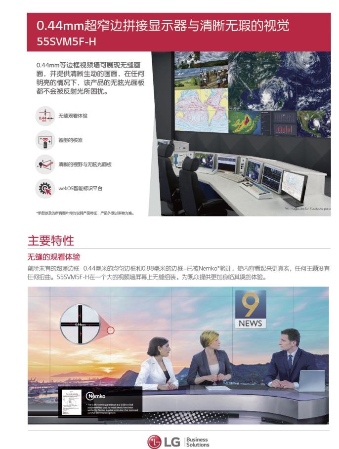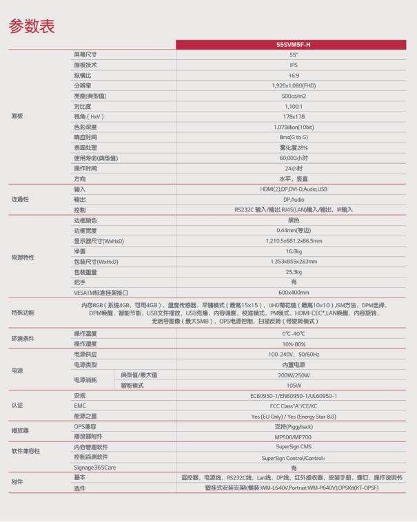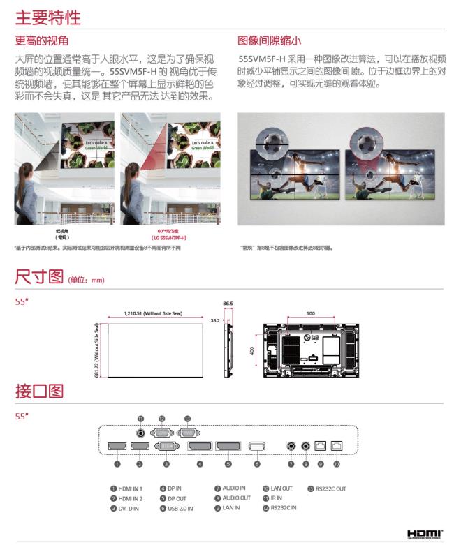 产品描述:前所未有的超薄边框-0.44毫米的均匀边框和0.88毫米的边框-已被Nemko*验证,使内容看起来更真实,任何主题没有任何扭曲。55SVM5F-H在一个大的视频墙屏幕上无缝组装,为观众提供更加身临其境的体验。