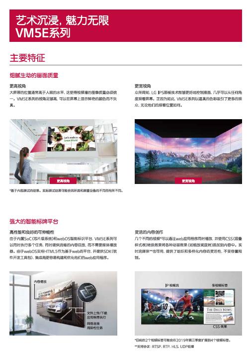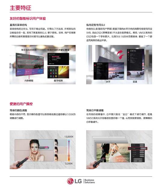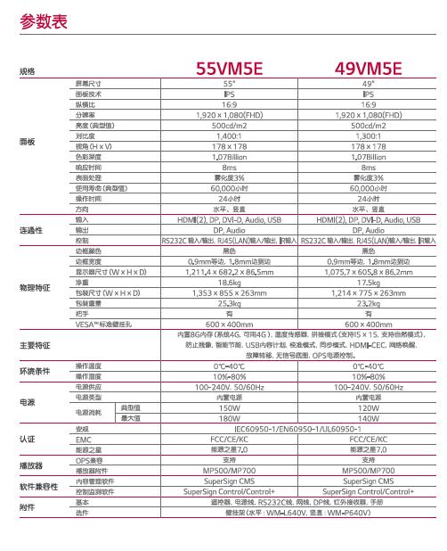 产品描述:0.9毫米窄边在带来打动人心的沉漫感,通过先道的智能标海平台变得更加强大。除了自动播放功策外,VM5E系列还能够进行多任务处理提高品牌知名度,推动您的店铺流量,并让客户参与品牌故事讲述,同时通过简化和更真观的用户界面为用户提供便利。