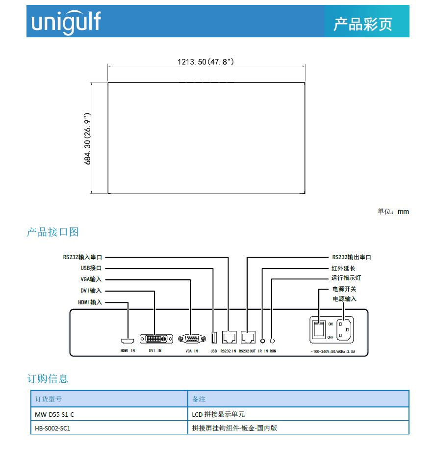 LCD 拼接显示单元 MW-D55-S1-C