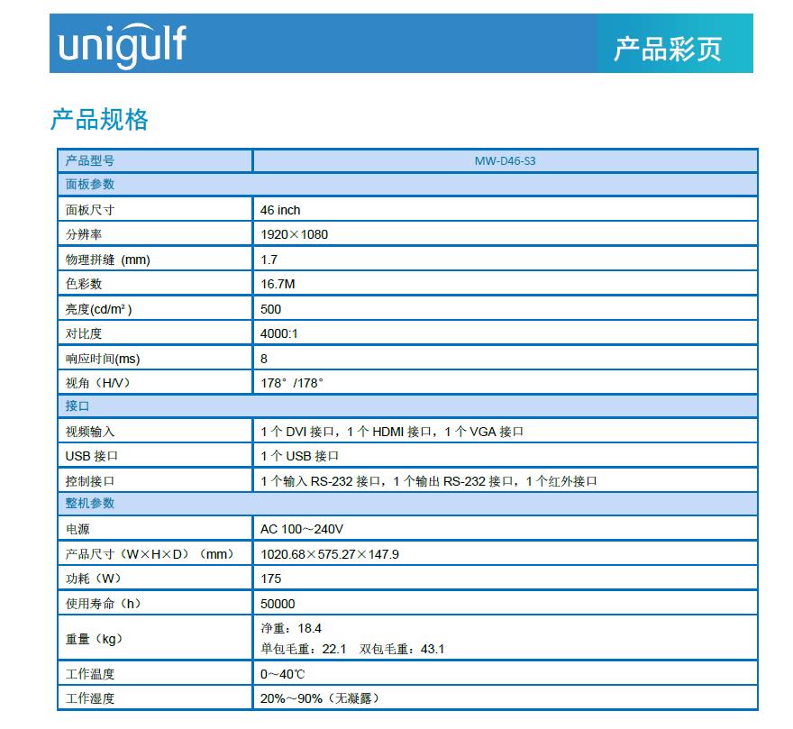 LCD拼接显示单元 MW-D46-S3