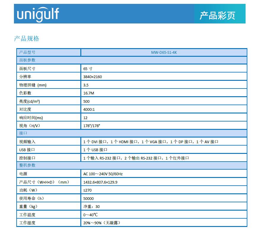 LCD拼接显示单元 MW-D65-S1-4K